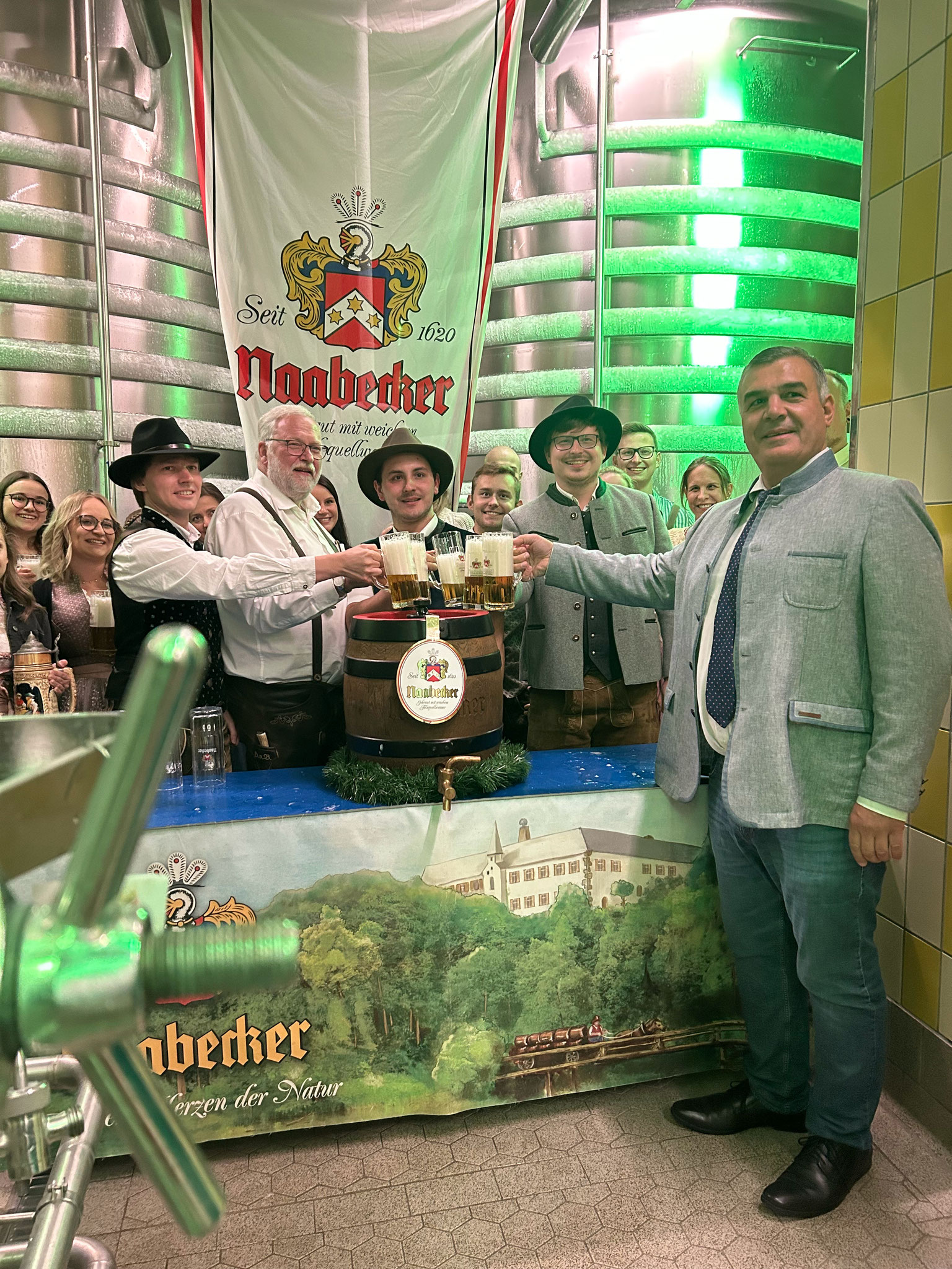 Der Countdown zur Fronberger Kirwa läuft, in nicht einmal zwei Wochen ist es soweit. Eine Abordnung des Kirwavereins war gestern in die Schlossbrauerei Naabeck eingeladen, um das Bier für das anstehende Kirwawochenende zu probieren. Betriebsleiter Michel Weiler begrüßte die Anwesenden und gab eine kleine Führung durch die Gär- und Lagerkeller. Dort wurde dann auch das erste Fass Bier angezapft und verköstigt.