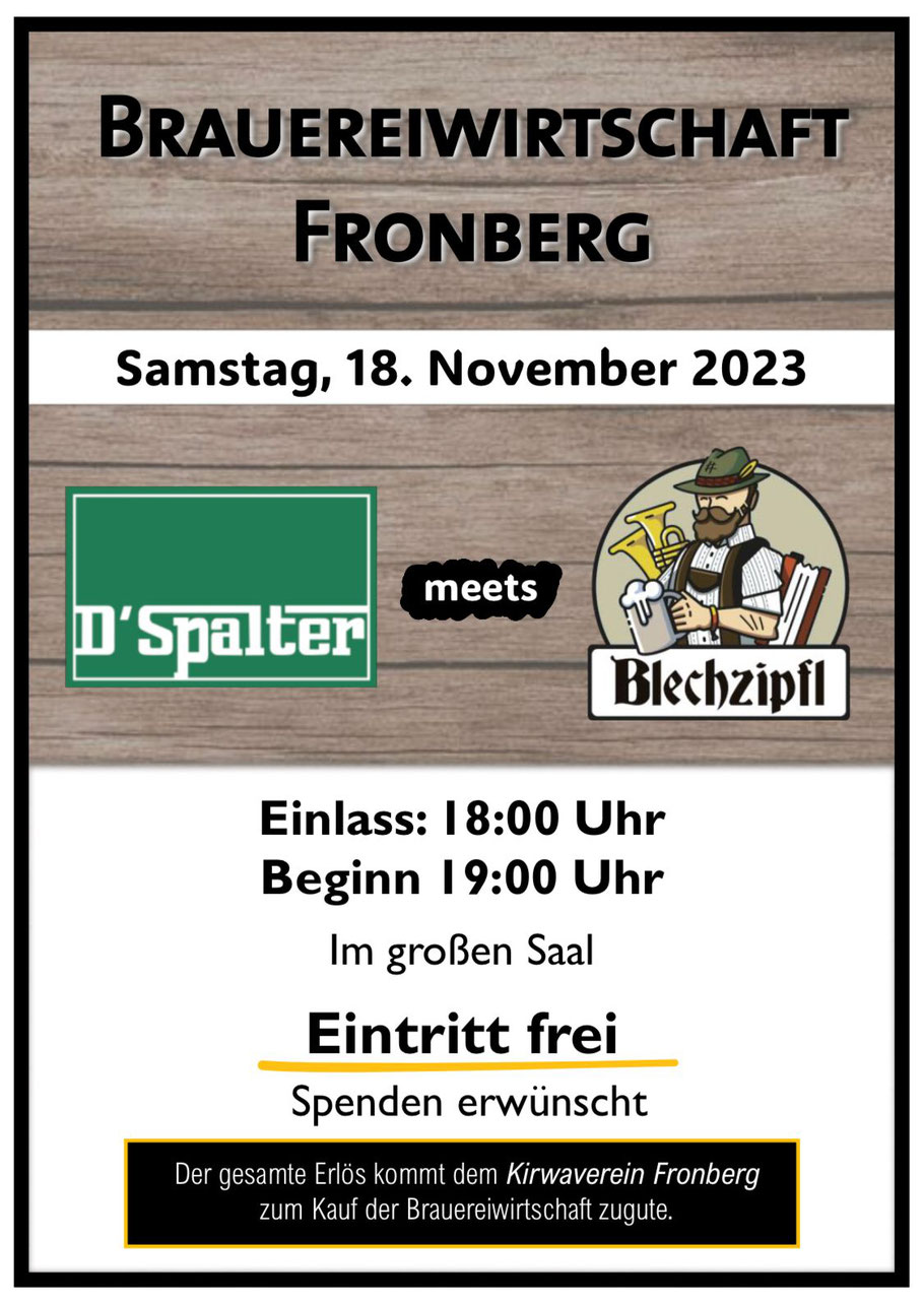 Ab Mittwoch 19. April 2023 um 17 Uhr fällt der Startschuss, der Kirwa-Verein Fronberg e.V. sperrt die Brauereiwirtschaft Fronberg wieder auf.